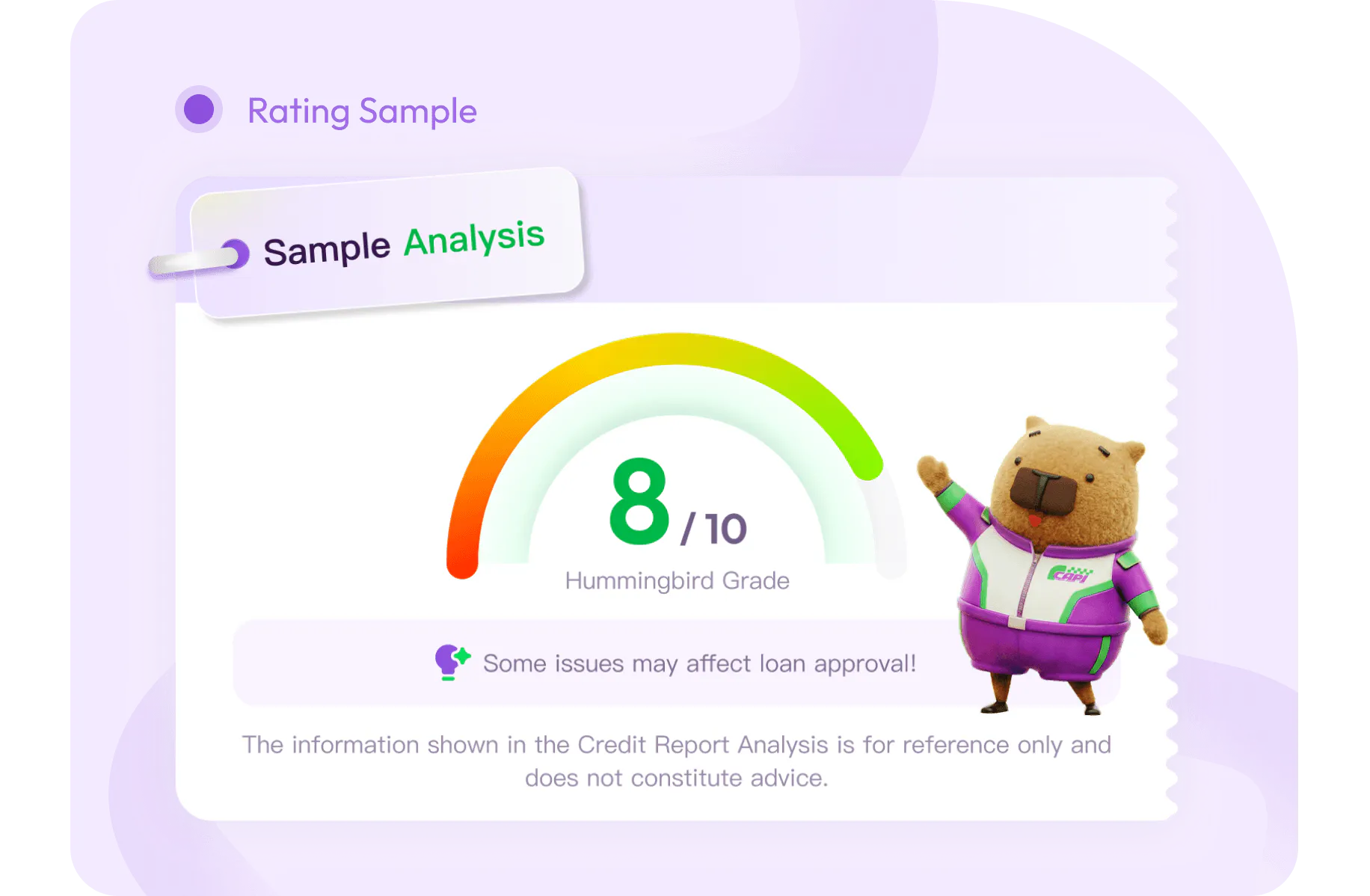 The Hummingbird Rating provides a comprehensive evaluation of your application habits, repayment history, debt ratio, and credit age — presenting your overall credit health index (Hummingbird Rating) on a scale of 0 to 10. The higher the rating, the healthier your credit standing and the greater your financial freedom.